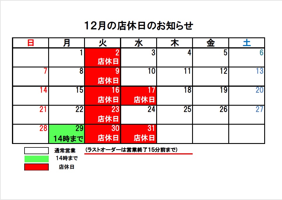 12月の店休日のお知らせです。こちらをクリックして下さい。